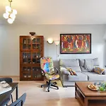 - ❓Is er een keuken beschikbaar in het appartement voor gasten?Ja, het appartement is uitgerust met een ingerichte keuken en biedt ook een waterkoker, een koelkast en een oven aan.